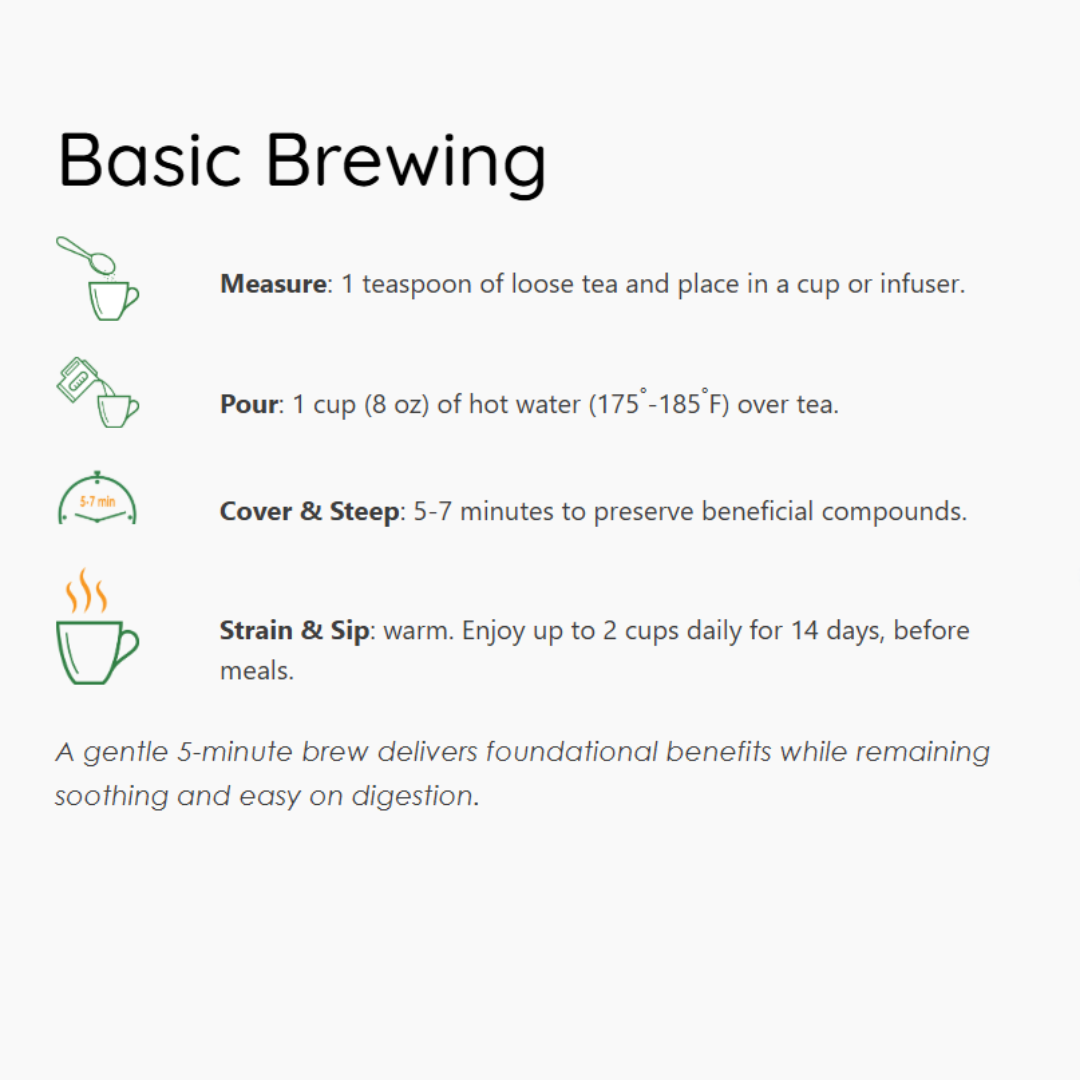 Your ParaCleanse experience is fully customizable. A quick 5-7-minute steep offers gentle daily maintenance, while a 12-24-hour cold steep or finely ground preparation delivers deeper, more intensive cleansing. Adjust strength and duration to your comfort level. True cleansing works best when it aligns with your body's rhythm. The longer the herbs steep, or the finer they're ground, the stronger the cleansing and detoxifying effects become.